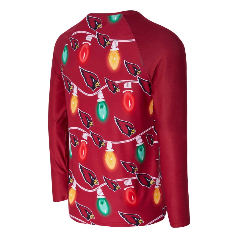 - All-over repeating graphics of team logo and string lights