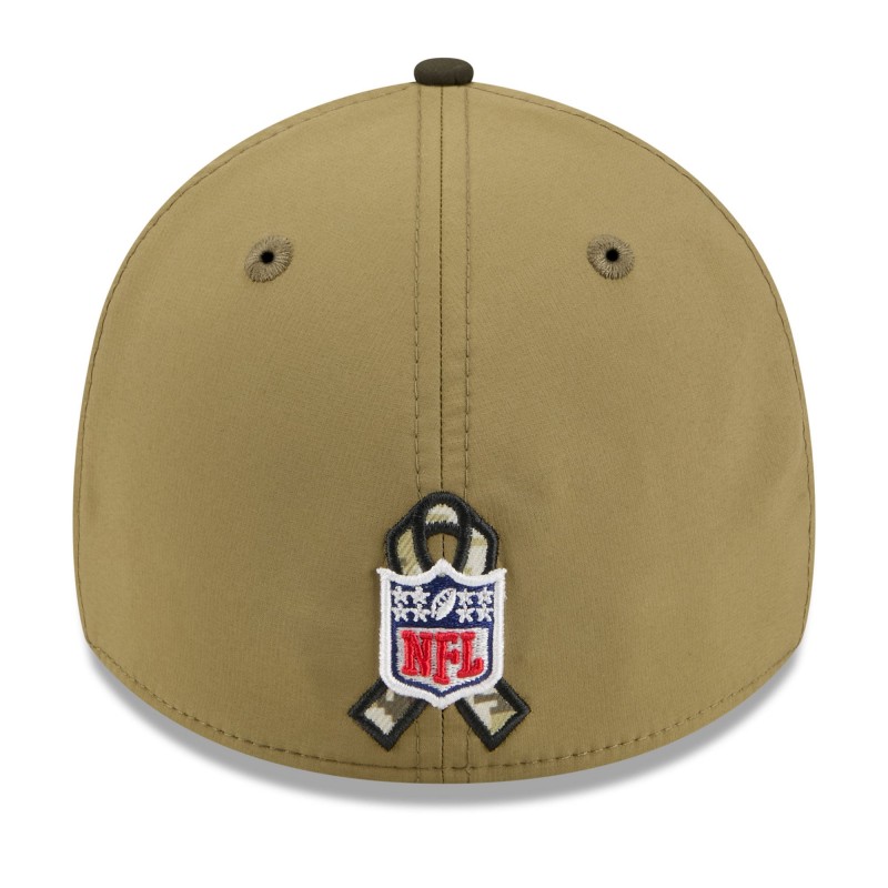 - Salute to Service ribbon sits behind embroidered NFL shield logo