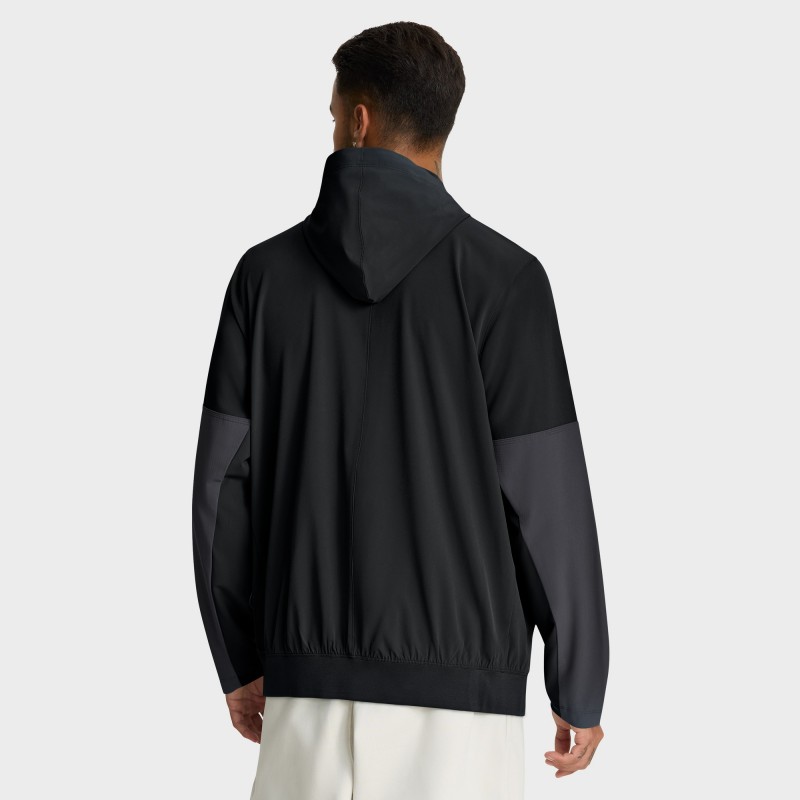 - Drawstring-adjustable hood
