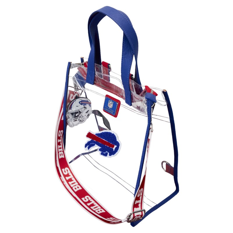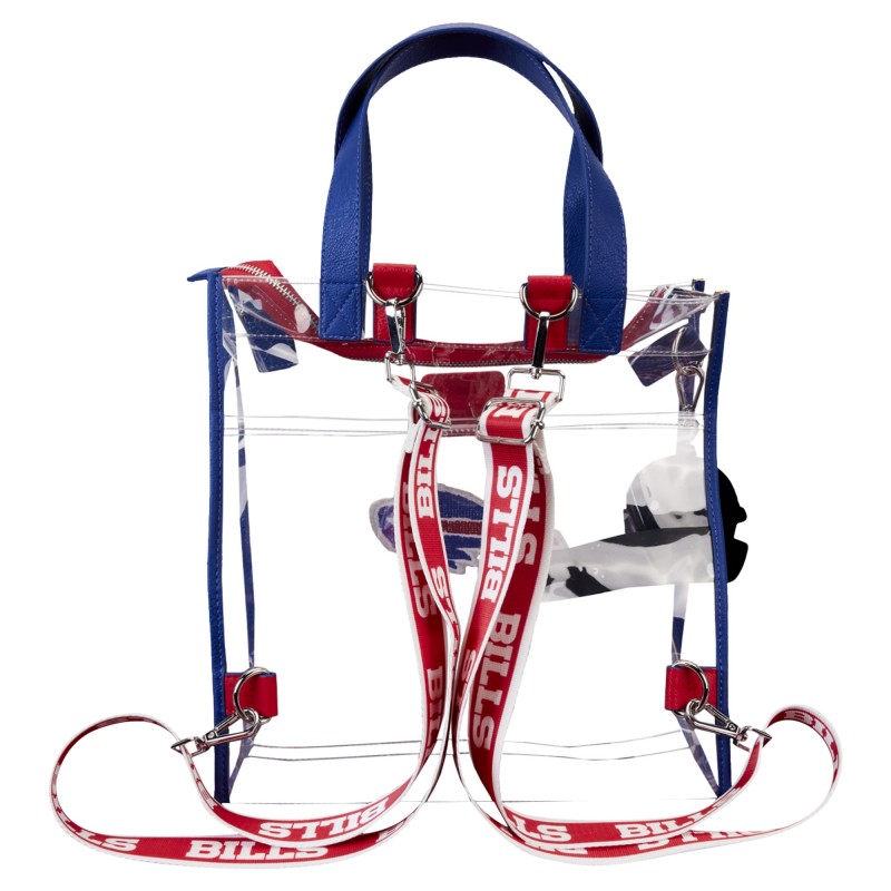 - Team name printed in repeating pattern on adjustable, detachable shoulder strap and backpack straps with lobster claw clasps