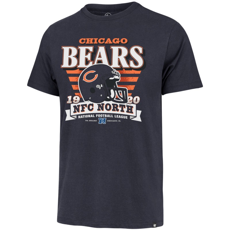 - Bold throwback helmet logo with striped background and team wordmark printed across the chest