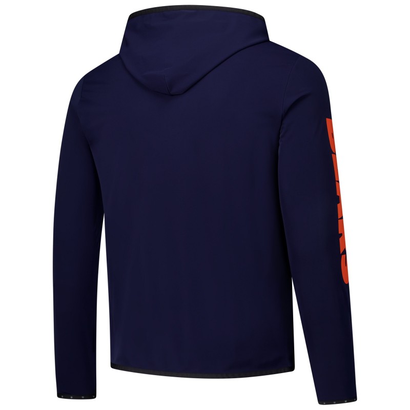 - Printed team logo at center front and wordmark down right sleeve
