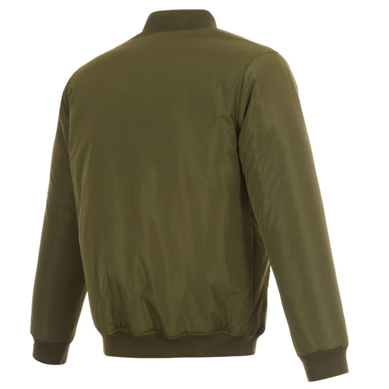 - Rib-knit trim at cuffs, collar and hem