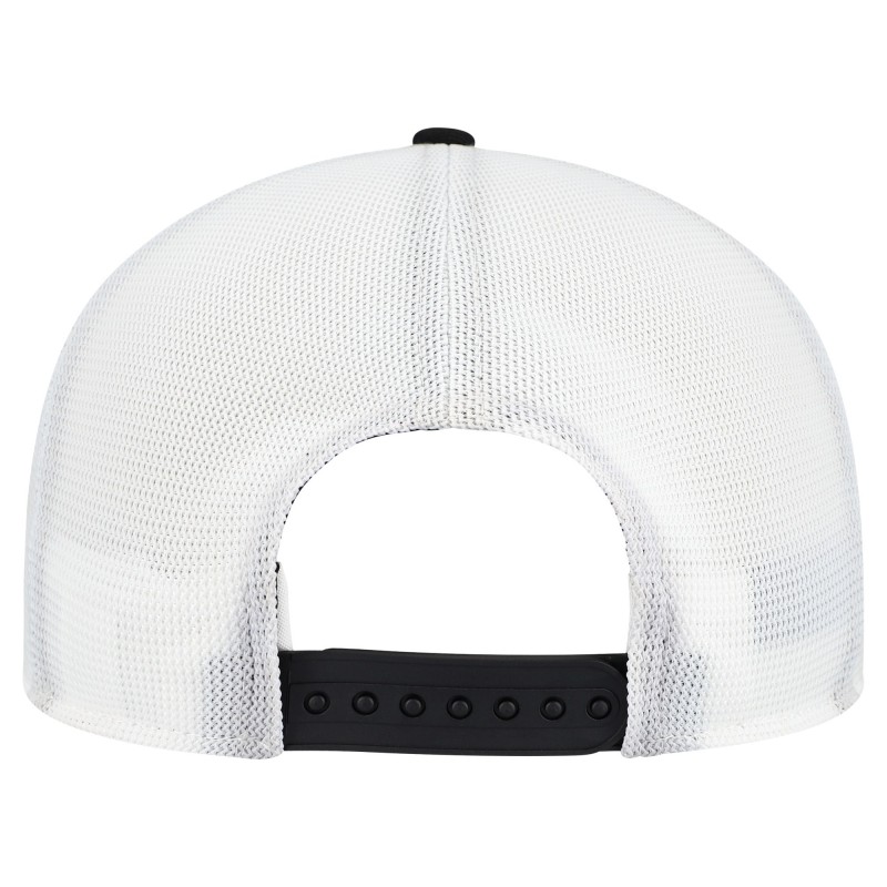 - Five-panel construction with solid front panel and mesh mid and rear panels