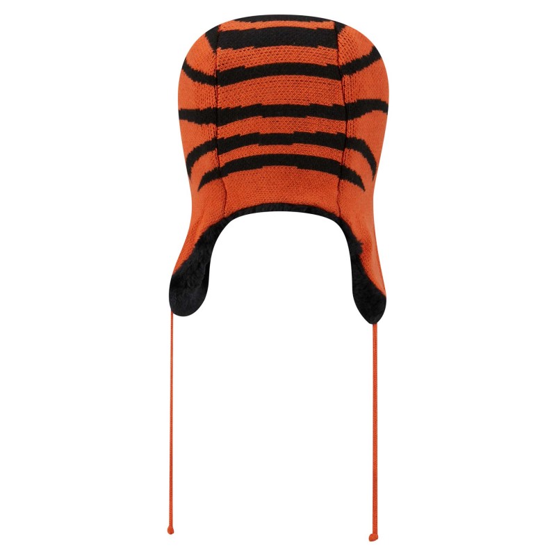 - Trapper style hat with ear covers and tie closure