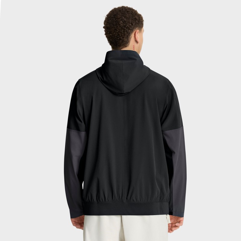 - Drawstring-adjustable hood