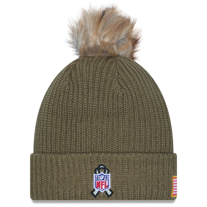 - Salute to Service ribbon sits behind embroidered NFL shield logo