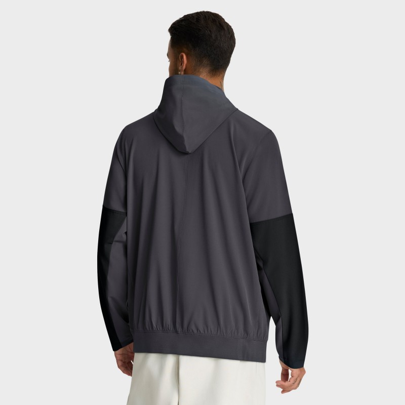 - Drawstring-adjustable hood