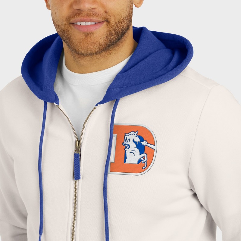 - Contrast-color hood, cuffs and hem