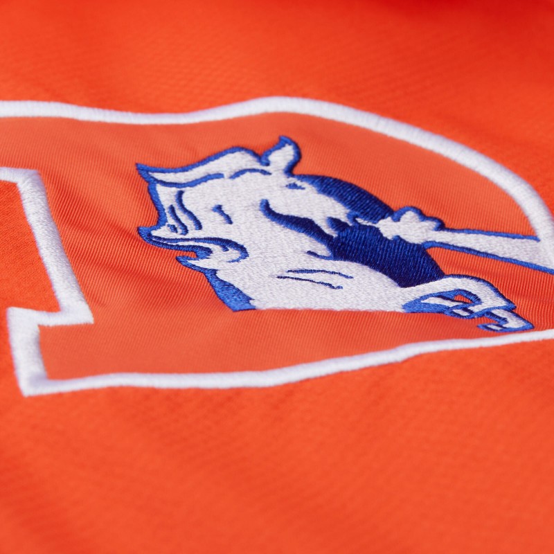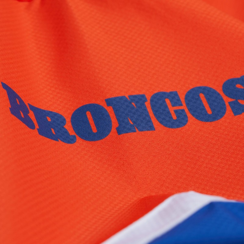 - Embroidered fabric applique team logo at left chest