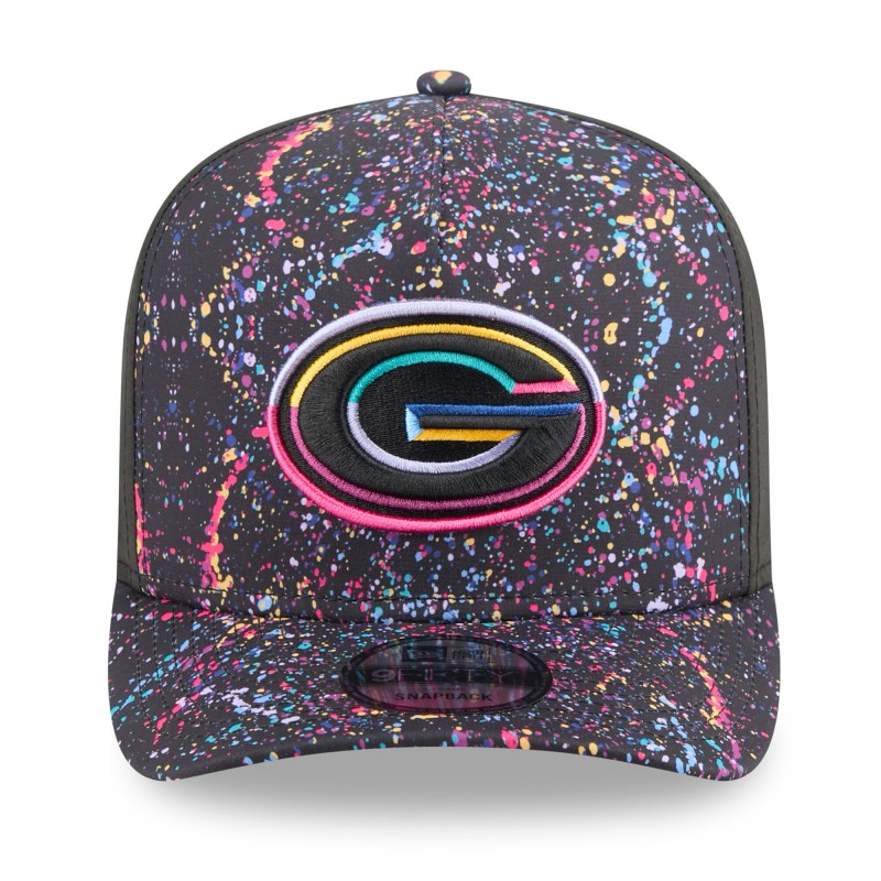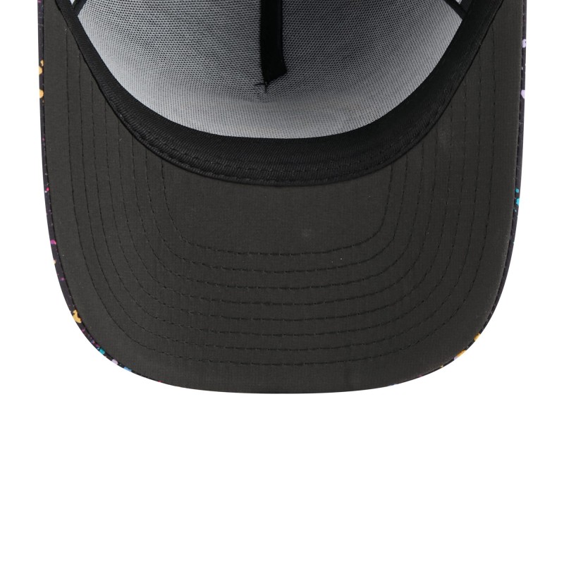 - Multicolor paint splatter pattern sublimated across front panels