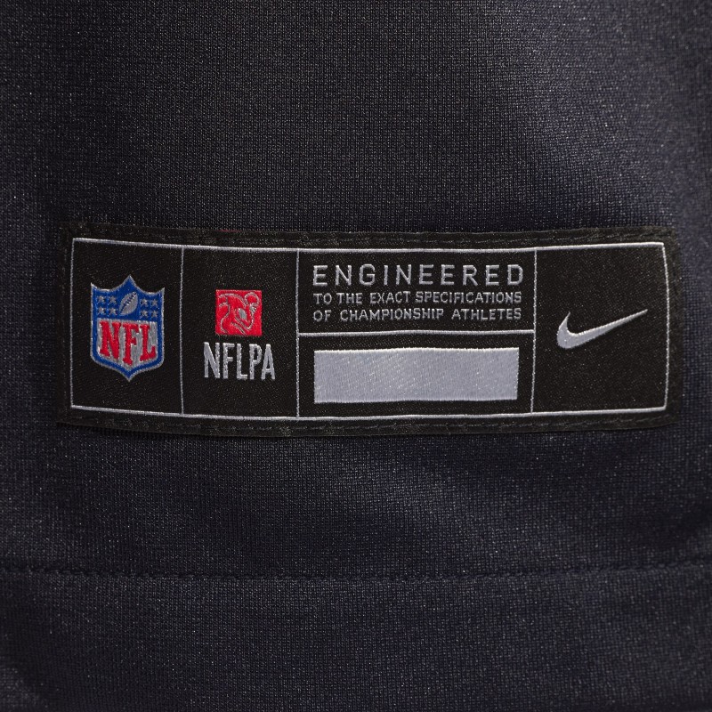 - Stitched-down NFL Shield at neck