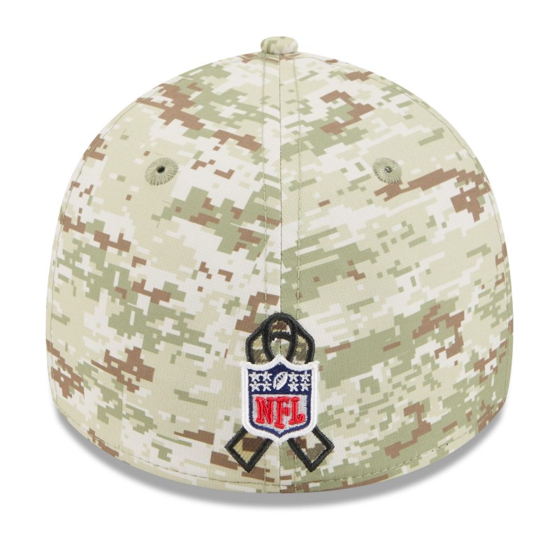 - Salute to Service ribbon sits behind embroidered NFL shield logo