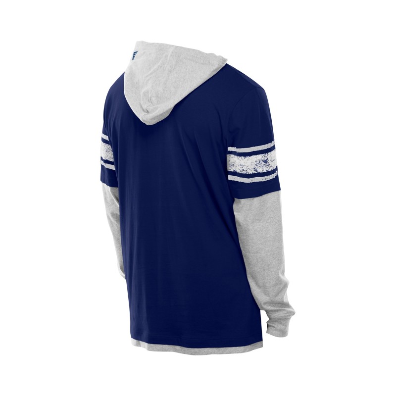 - Team graphic printed at center chest with distressed details