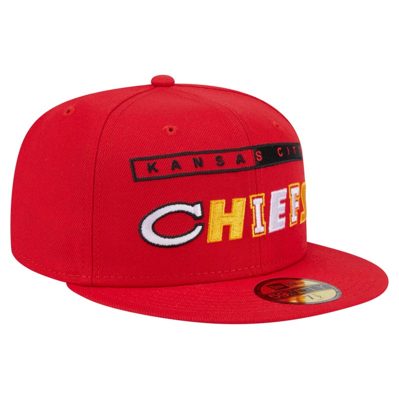 - Ransom note style team name graphic embroidered across the front crown with raised details