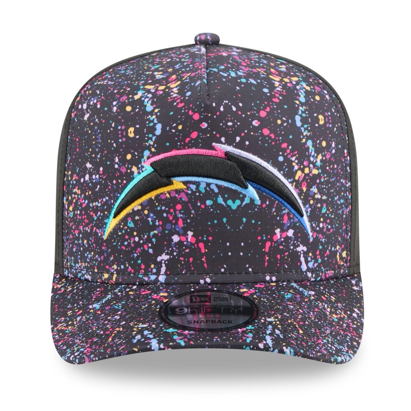 - Multicolor paint splatter pattern sublimated across front panels