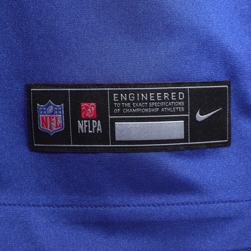 - Stitched-down NFL Shield at neck