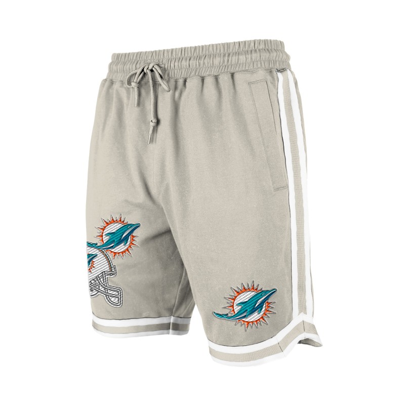 - Embroidered team logos on both legs and wordmark down left side
