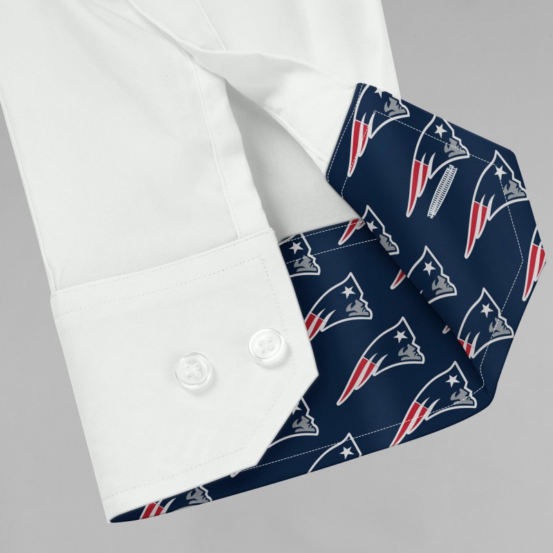 - Team logo in repeating pattern printed on inside of collar and two-button cuffs