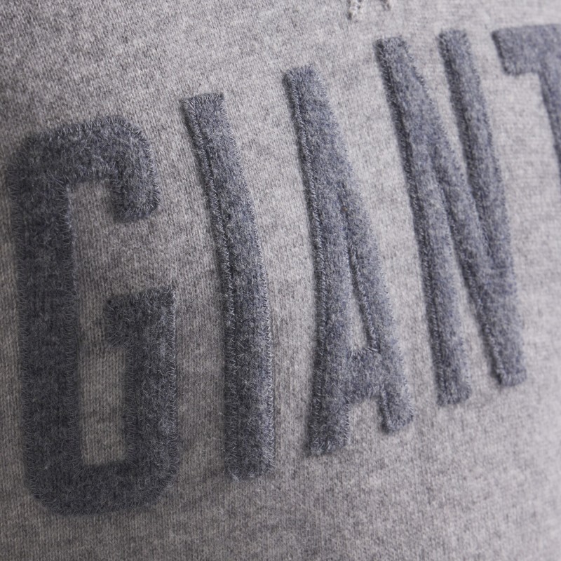 - Shetland wool knit lettering applied with a zig-zag stitch