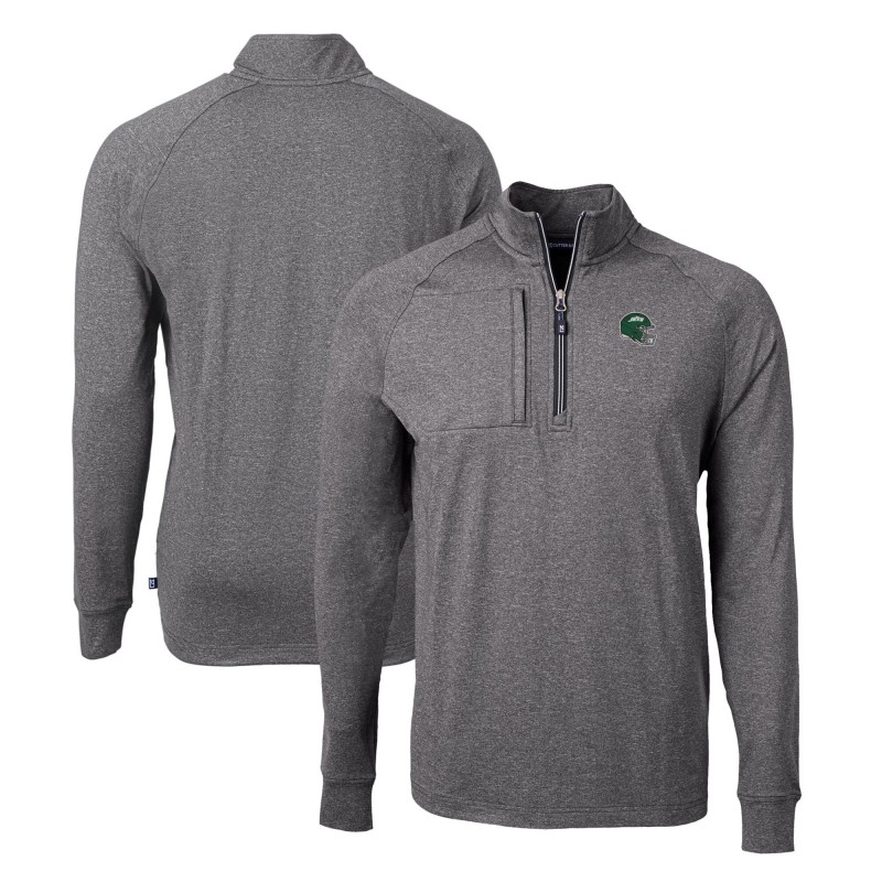 - Heathered knit jersey fabric provides wind resistance and lightweight warmth for year-round layering