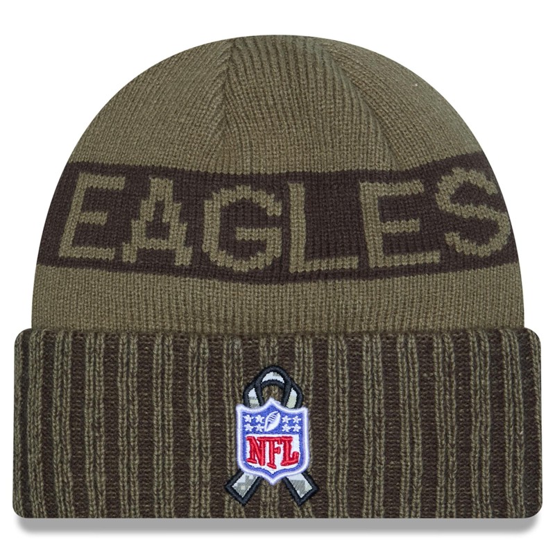 - Salute to Service ribbon sits behind embroidered NFL shield logo