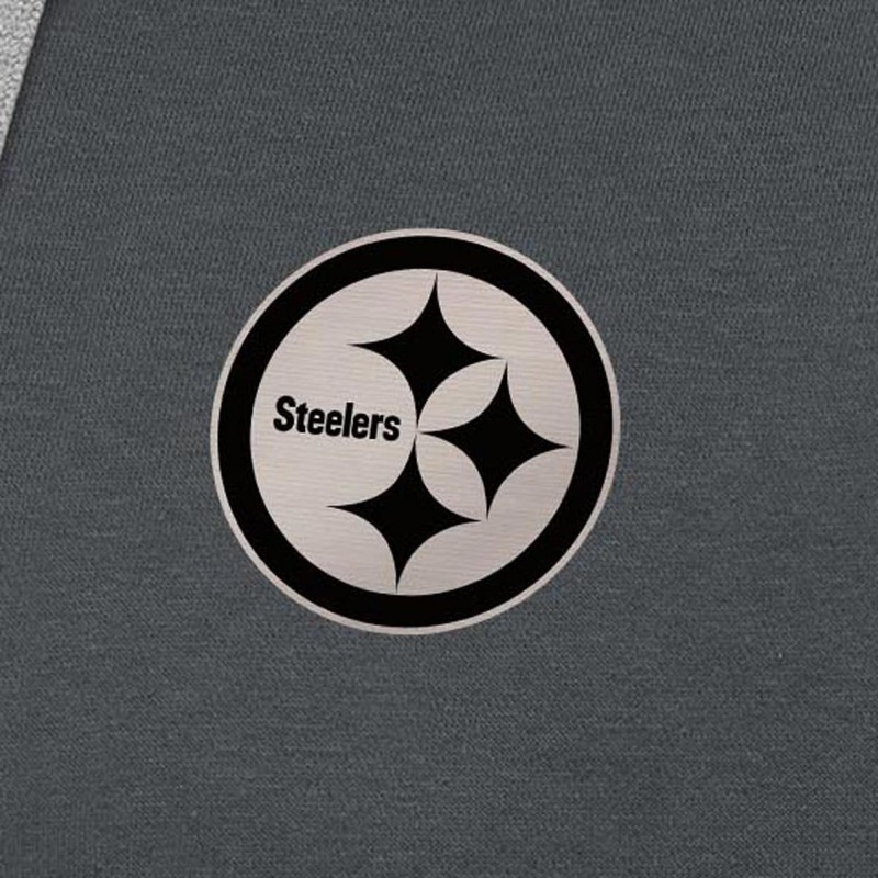 - Heat-sealed team logo in brushed carbon color on left chest