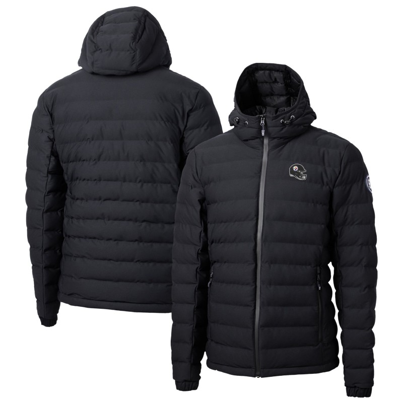 - Concealed stowaway hood packs inside collar
