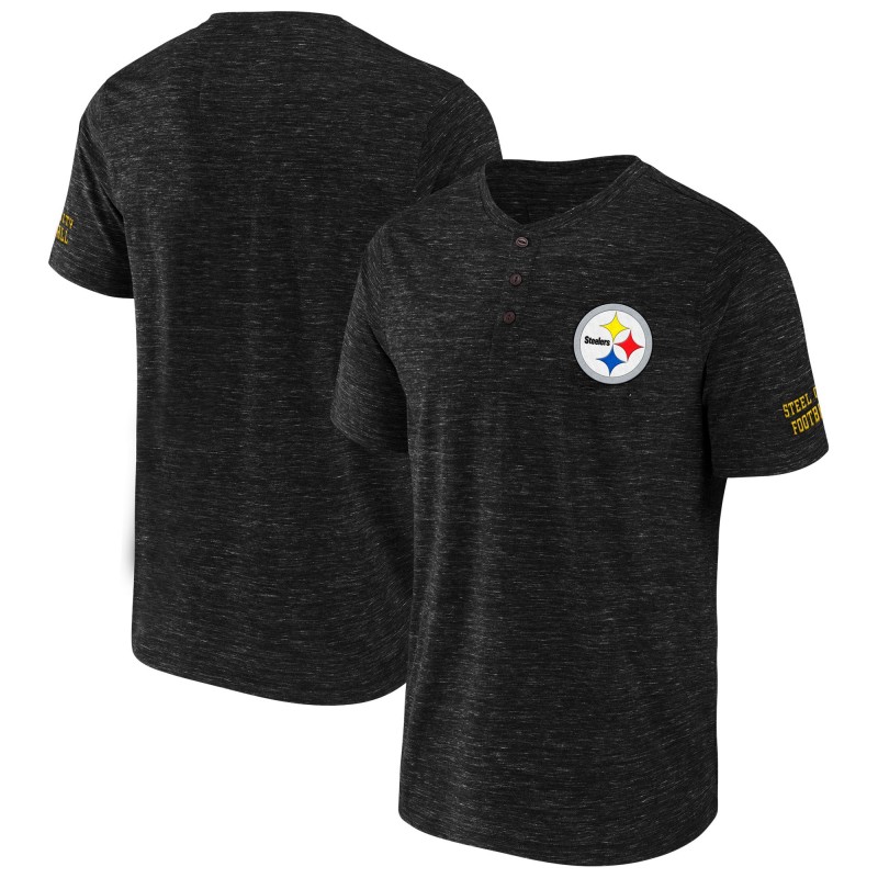 - Three-button Henley neckline