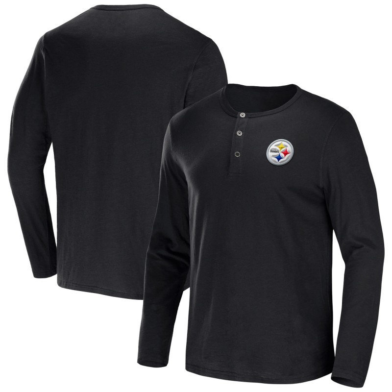 - Three-button Henley neckline