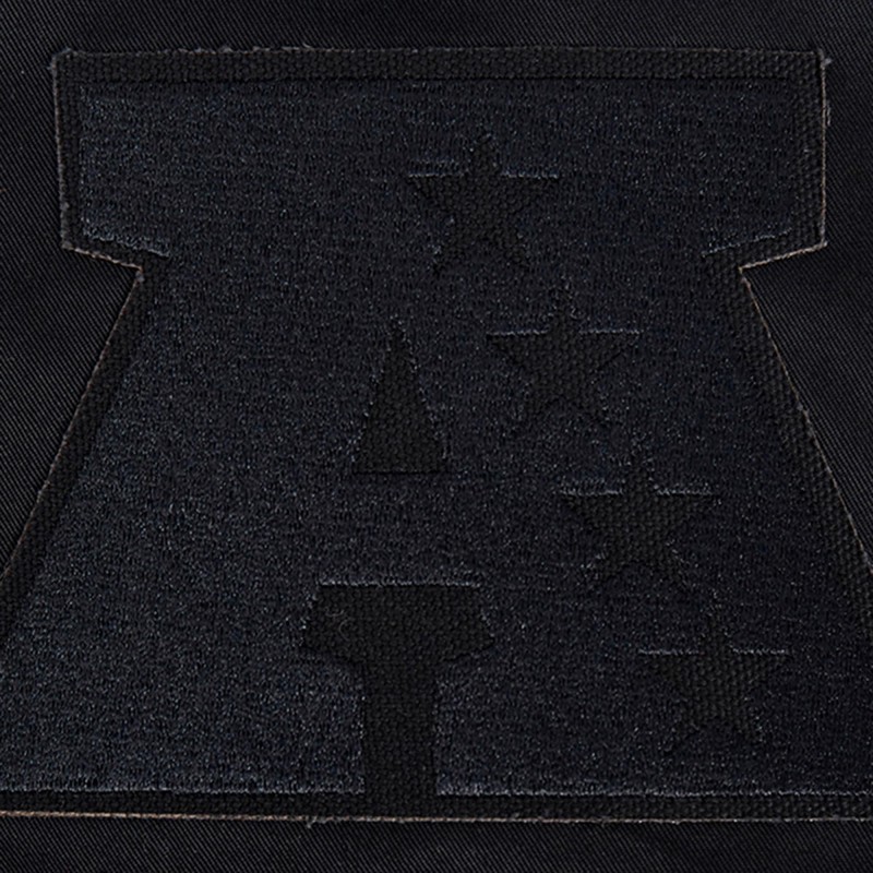 - Enlarged heat-sealed woven team patch displayed on the back