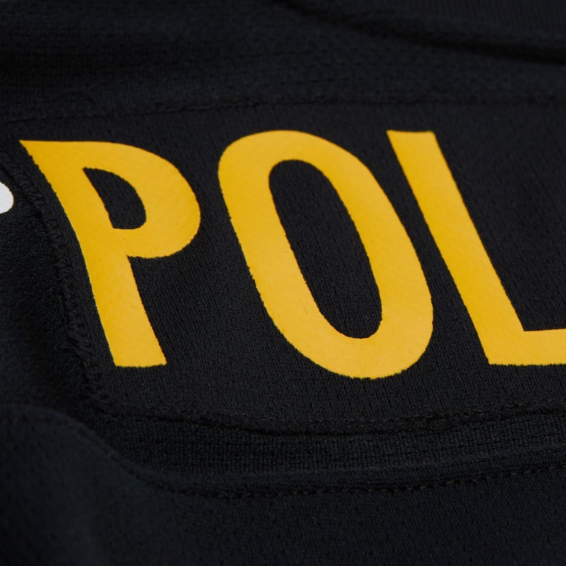 - Oversized heat-sealed graphics replicate an iconic jersey style in large detail