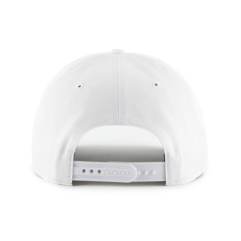 - Embroidered team name wordmark on front panel with raised details