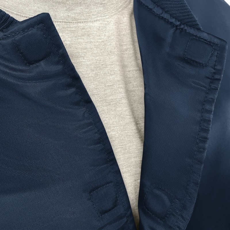 - Rib-knit collar, cuffs and waist