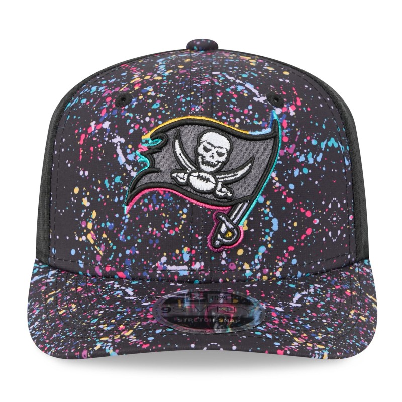- Embroidered fabric applique on right-side crown