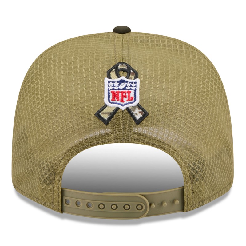 - Salute to Service ribbon sits behind embroidered NFL shield logo