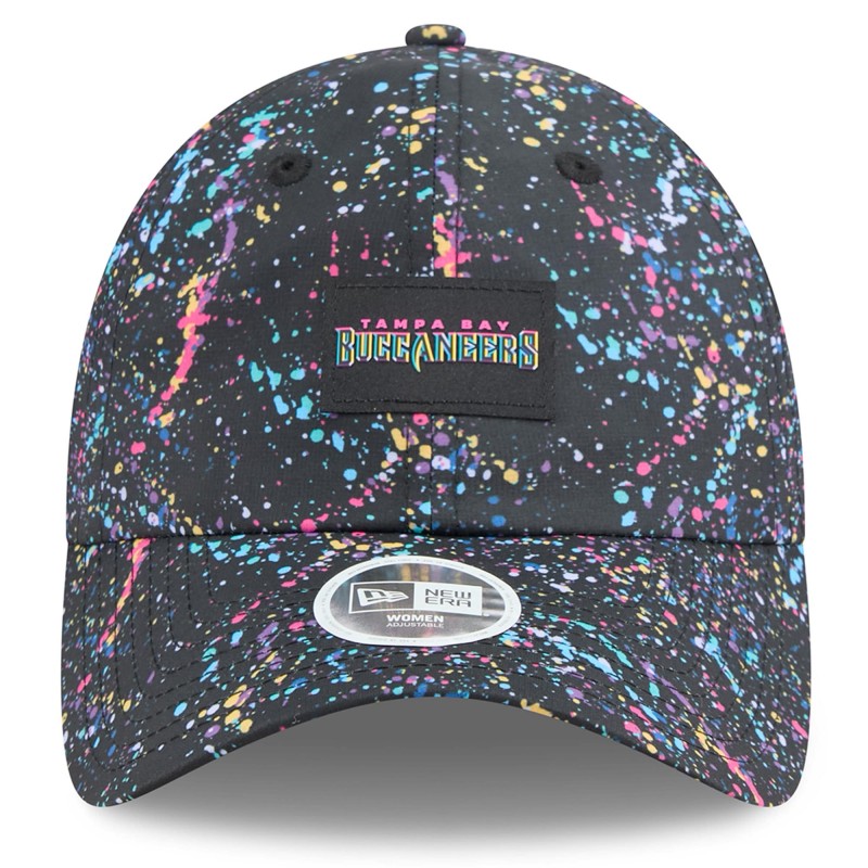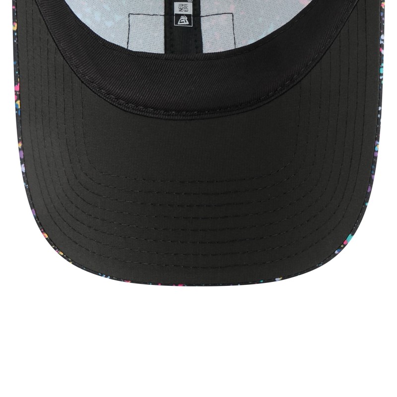 - Multicolor paint splatter pattern sublimated across front panels