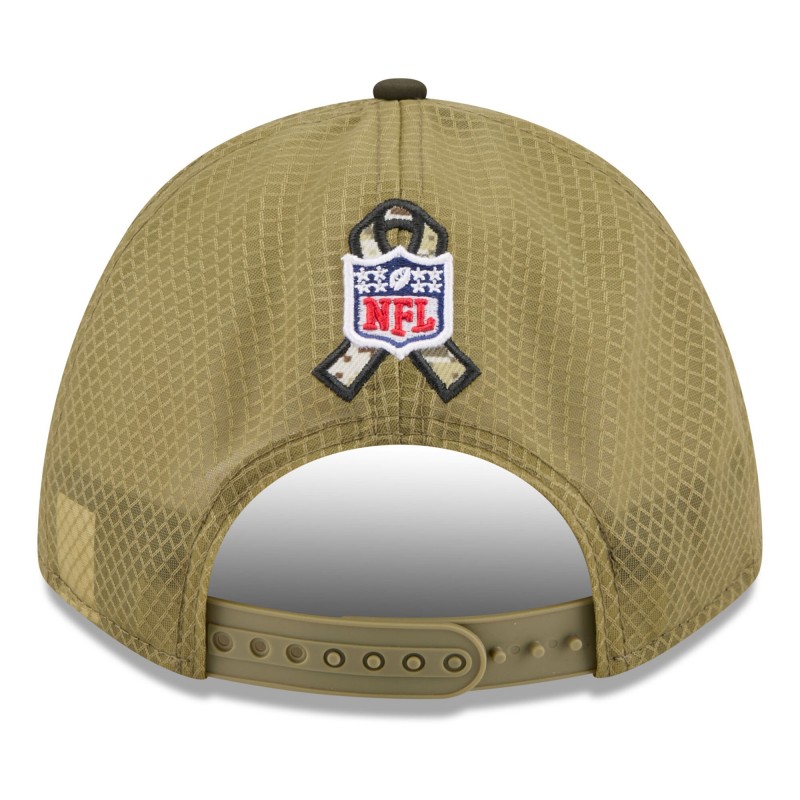 - Salute to Service ribbon sits behind embroidered NFL shield logo